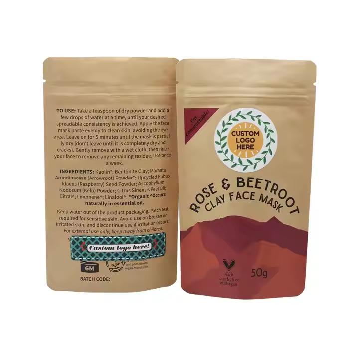 Available in various formats such as stand-up pouches, flat bottom bags, three-side seal pouches, zipper pouches, and handle paper bags, these bags can be customized with resealable zippers, clear windows, tear notches, one-way degassing valves, or holographic finishes.